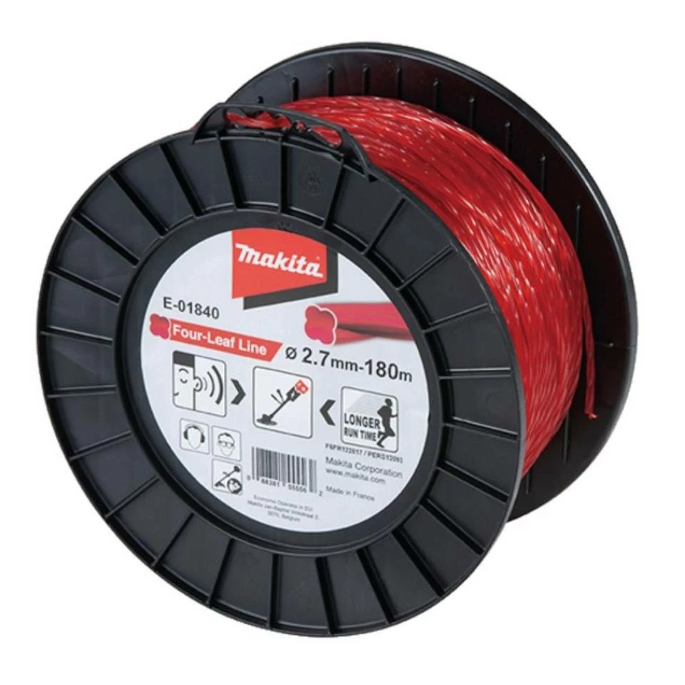 Der Mähfaden 'Four-Leaf' wurde speziell für Akku-Sensen und -Trimmer entwickelt, eignet sich für niedriges und hohes GrasDurch die Form, die im Querschnitt an ein Kleeblatt erinnert, bildet sich ein geringerer Luftwiderstand, als bei einem runden Mähfaden. Er ist hörbar leiser und kann die Laufzeit mit einem Akku erhöhen.