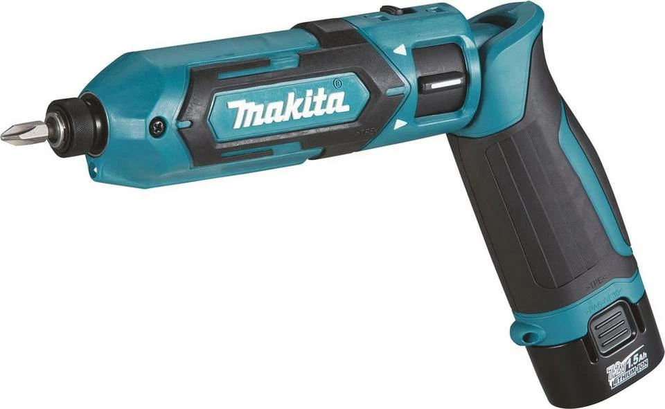 Ein kompakter 7,2 V Knickschlagschrauber. Ein ideales Gerät für beengte, schwierige Orte, ausgestattet mit einem LED-Arbeitslicht. Drehmoment 25 Nm.