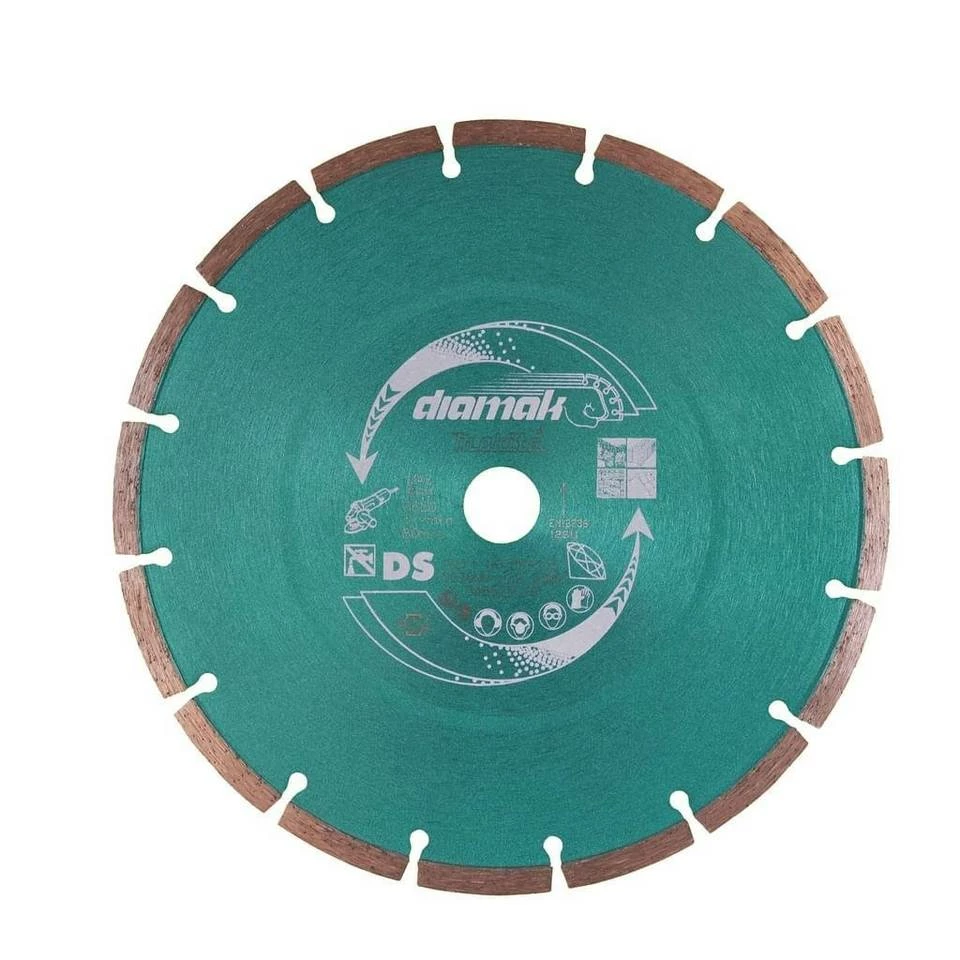 Produktbeschreibung: Die Makita Diamak Diamant-Trennscheibe eignet sich perfekt für den Einsatz mit Ihrem Winkelschleifer an Beton, weichen Ziegeln, Marmor, Schiefer, Zementziegeln und allgemeinen Baustellenmaterialien. Technische Daten: Durchmesser: 230 mm Bohrung: 22,23 mm Stärke: 7 mm Max. Drehzahl: 6.650 U/Min Schnittfortschritt: 80 m/s (4.800 m/min) Einsatzgebiete: Stein und Beton