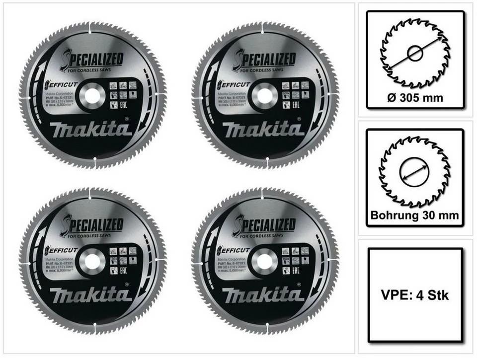 Makita Kreissägeblatt »Makita CMSXF305100G SPECIALIZED EFFICUT Sägeblatt 305 x 2,15 x 30 mm 4 Stk. (4x B-67321) 100 Zähne für Holz«