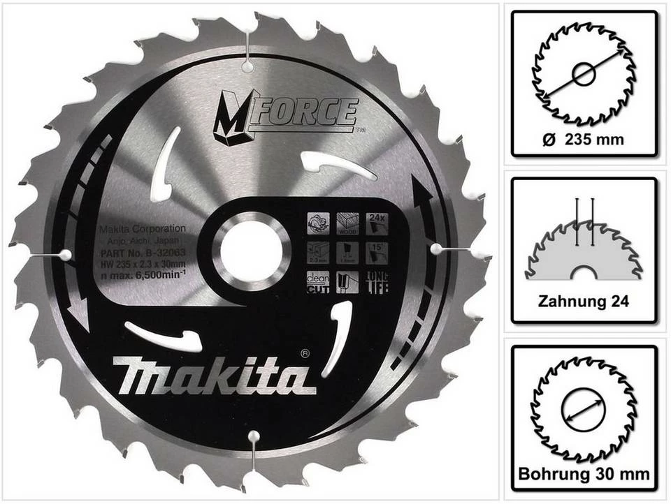 - Passend für: HandkreissägenEinsatzbereich: HolzDurchmesser: 235mmSchnittstärke: 2,3mmAusführung: 24 ZähneInhalt: 1