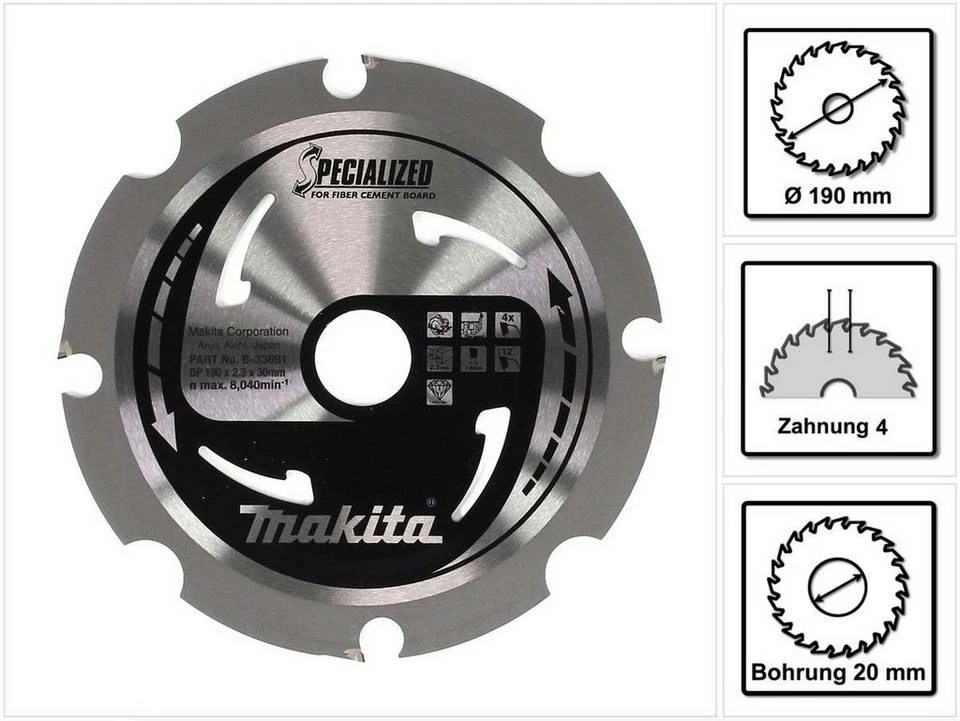 - Zähnezahl: 4Bohrung: 30 mm Durchmesser: 190 mmZahnwinkel: 12°Max. Drehzahl: 8040 min-1Geeignet für: