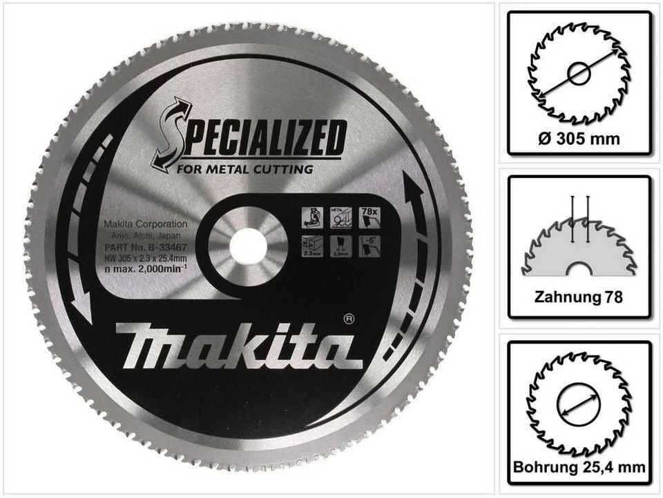 - Typ: HM – HartmetallDurchmesser: 305 mmLochdurchmesser: 25,4 mmZähnezahl: 78