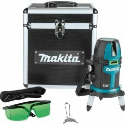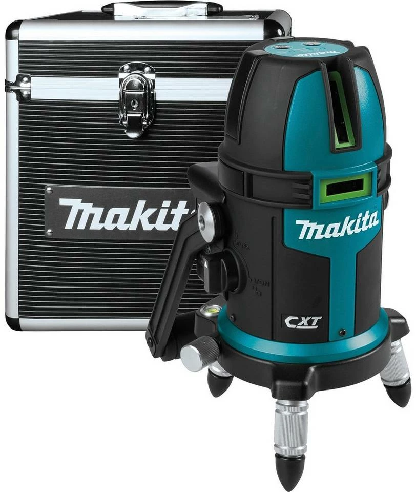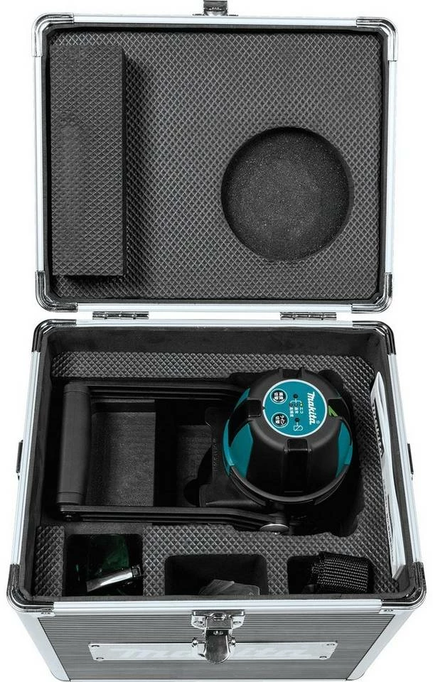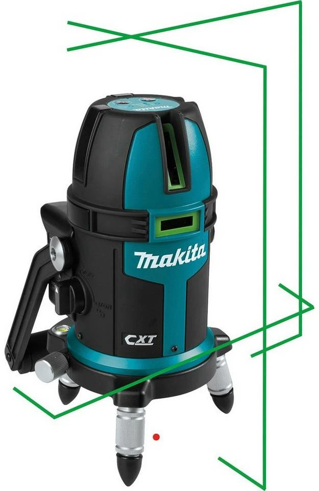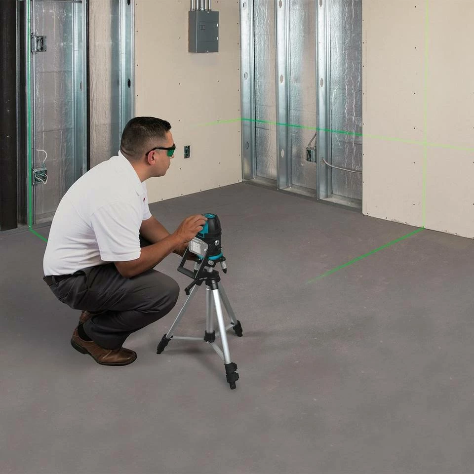 - 1 horizontale, 2 vertikale leuchtstarke grüne Laserlinien