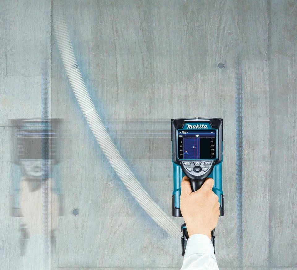 18 V Akku-Ortungsgerät von MAKITA zum präzisen untersuchen von Mauerwerk, um Metalleinschlüsse, Rohre oder Holz aufzufinden. Das Ortungsgerät zeigt Metalleinschlüsse bis 180 mm und Holzeinschlüsse bis 25 mm auf dem übersichtlichen 4,1" Display. Es können bis zu drei Ergebnisse angezeigt werden.