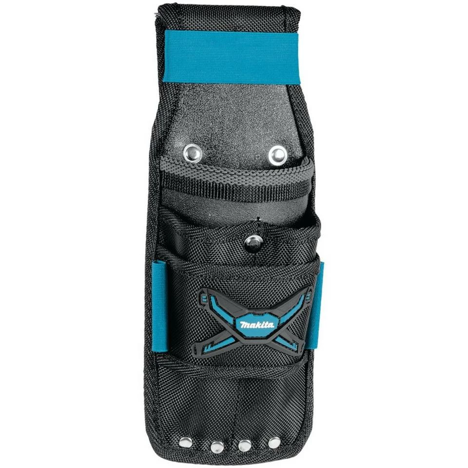 Der Meißel- und Werkzeughalter verfügt über einen Polypropylen-Schutz im Inneren und eignet sich somit für scharfe Meißel. Die zusätzliche vierfache Vernietung erhöht die Lebensdauer. Neben den elastischen Bändern, verhindert ein Anti-Rutsch-Band, an der Oberkante des Hauptfaches ein Herausfallen. Passend auf das Strap-Belt-System.